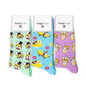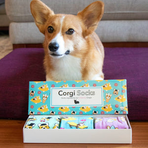 Each Gift Box includes 3 pair of adorable corgi socks: