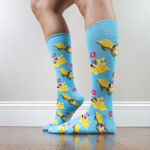 We made these socks to be fun, but they're comfortable too. Designs are knit into the socks, so there's no stiff printing, and we use the perfect blend of cotton and elastane, so they're soft and have the perfect stretch.